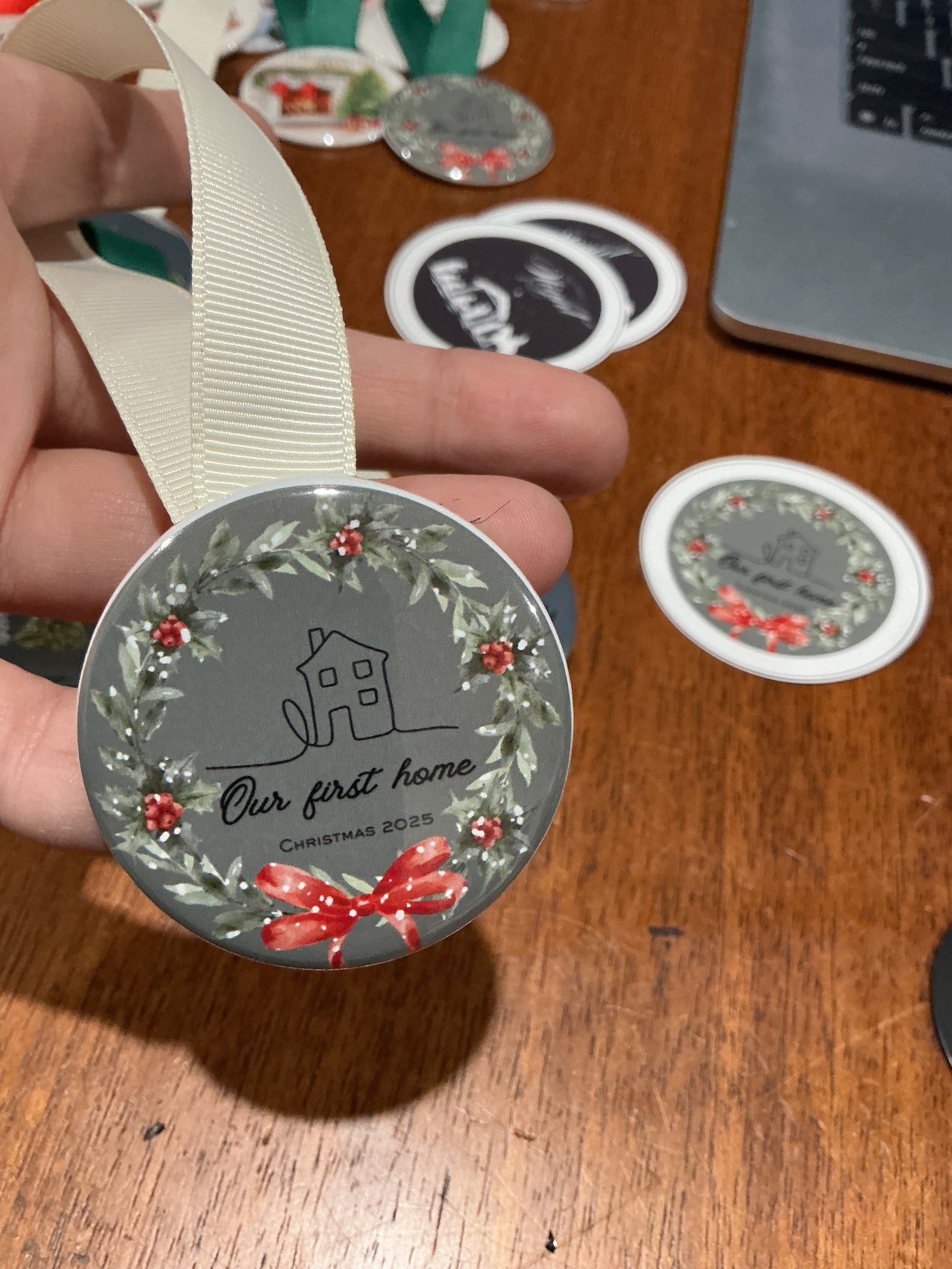 Ornament that says “Our First Home Christmas 2025”